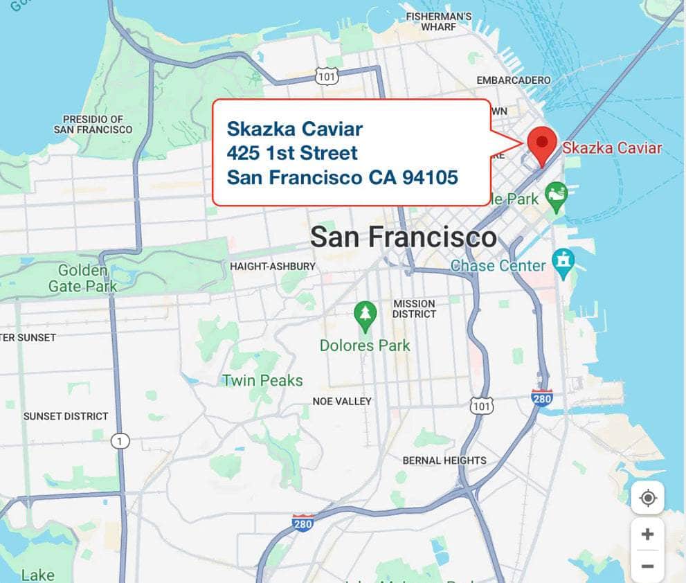 Located near the Bay Bridge at 425 1st Street, Skazka Caviar is a trusted destination for individuals, restaurants, and businesses seeking the finest San Francisco caviar. Whether you’re a caviar connoisseur or a first-time buyer, Skazka ensures a product that embodies freshness, flavor, and authenticity.